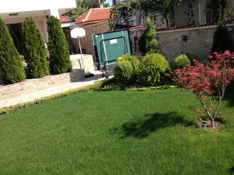 Стилно озеленяване с подбрана растителност и аксесоари. Направено е също озеленяване на два балкона със сандъчета с пролетни цветя и вечнозелени растения. Напояването е решено с изцяло автоматизирана подземна поливна система Hunter. Използвани са програматори X-Core за градината и NODE-9V за управление на поливната система на балконите.
