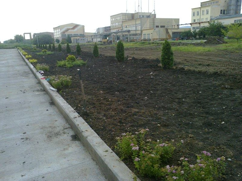 В озеленяването са използвани вечнозелена растителност като смарагдови туи, туя golden globe, хамиципариси, юниперус сабина, както и цъфтящи храсти потентила, спирея, вайгела и др. Също така бяха изградени два алпинеума с разнородна растителност. За затревяването е използвана висококачествена многокомпонентна тревна смеска за обща площ от 1500 м2.