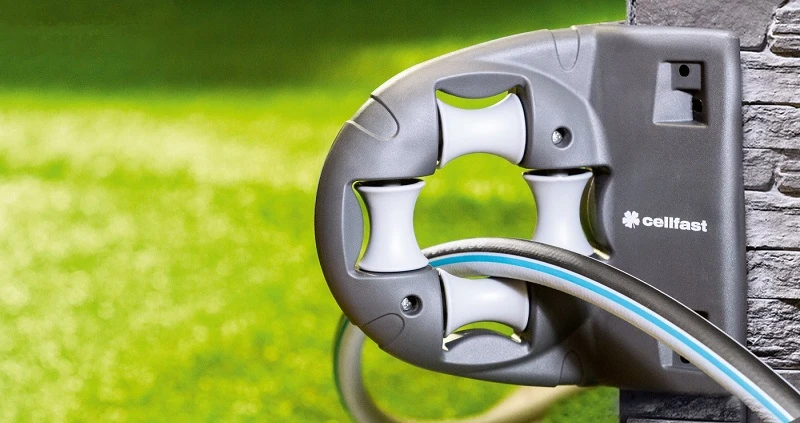 Ъглов водач за градински маркучи, предотвратява заплитане и триене в огради и ъгли на сгради. Благодарение на четирите си ролки, позволява движение на маркуча почти във всички посоки. Максимален външен диаметър - 55 мм. Два варианта на монтиране - на ъгъл или на плоска повърхност.