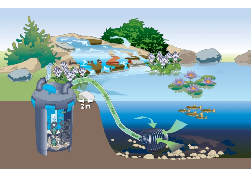 Идеалното решение за чиаста вода - комбинация от филтри, помпа и ултравиолетова технология на филтрация. Лесно почистване чрез интегрирана в капака функция за почистване. Филтърът може да бъде заровен до капака за перфектна интеграция в околната среда.