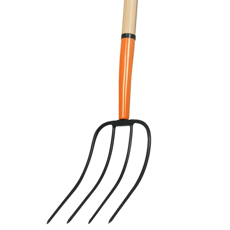 Удобна къса градинска вила с 4 зъба, подходяща за събиране на сено, трева и култивиране на почвата. Главата е от кована стомана, а дървената дръжка лакирана и полирана. Добавена е заварена ръкохватка тип “Д”, която позволява повече контрол при работа.