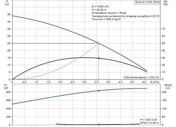 Тъй като е самозасмукваща, SCALA1 може да изпомпва течности от ниво под самата нея. Ако е запълнена с вода,
