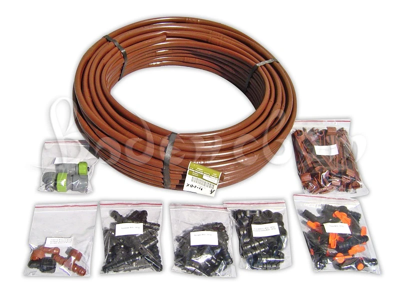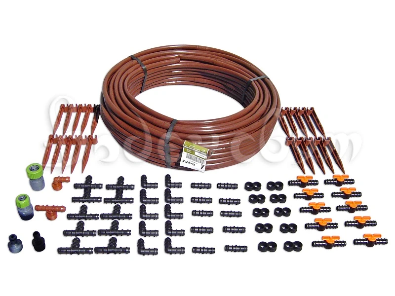 Комплект за капково напояване със захранване от градински маркуч е удобен за всякакъв вид градини и култури. Готов за инсталиране и директен монтаж. Съдържа всичко, от което имате нужда, комплектът е предвиден да се захранва с чиста (чешмяна) вода - няма нужда от филтър. Комплектът е с капков кафяв маркуч!