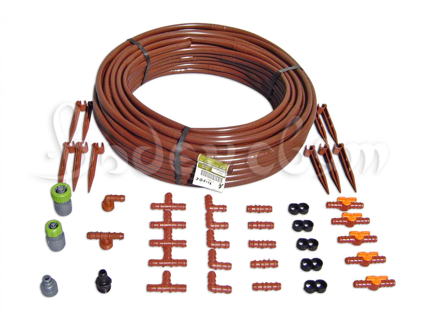 Комплект за капково напояване със захранване от градински маркуч е удобен за всякакъв вид градини и култури. Готов за инсталиране и директен монтаж. Съдържа всичко, от което имате нужда, комплектът е предвиден да се захранва с чиста (чешмяна) вода - няма нужда от филтър. Комплектът е с капков кафяв маркуч!