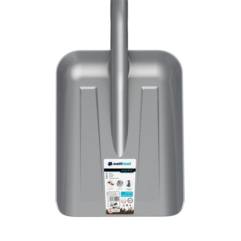 Висококачествена права лопата, направена от неръждаема закалена стомана, удобна ергономична дръжка. Подходяща за събиране, изсипване на инертни материали. Дръжката на лопатата е покрита със SAFETOUCH™ повърхност, която осигурява сигурен захват и удобство при употреба. Ергономичната дръжка дава сигурен и устойчив захват при работа, като едновременно с това ви гарантира стабилна поза, която намалява умората в мускулите. Главата на лопатата е изработена от индукционно калена стомана, което я прави устойчива, както на външни условия, така и на ежедневна употреба.