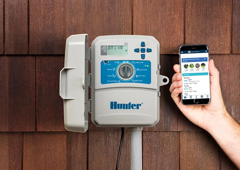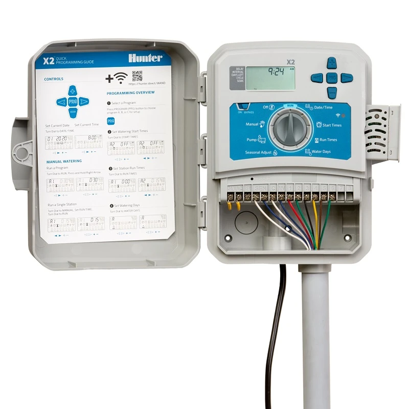 Програматорът продължава наследството, изградено от полулярния модел на HUNTER INDUSTRIES X-Core®. Подобен набор от надеждни и високоефективни възможности, но за разлика от X-Core® , X2 променя стандартите за централизирано управление на поливната система, като предлага това управление да става дистанционно, чрез Wi-Fi връзка, с помощта на Hydrawise приложение, което можете да намерите в App Store или Google Play, посредством вашето смарт устройство. Wi-Fi управлението става чрез присъединяване на допълнителен модул към програматора(не е включен в комплекта), програматорът работи и без модул към него, но без Wi-Fi управление.