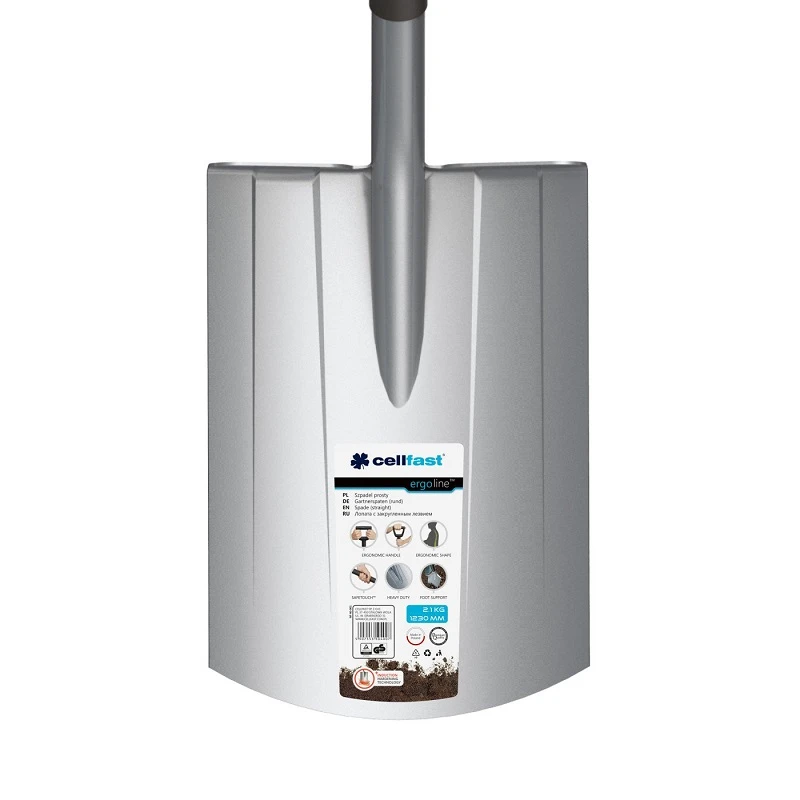 Висококачествена права лопата, направена от неръждаема закалена стомана, удобна ергономична дръжка. Подходяща за работа в твърди почви, позволява лесно копаене и засаждане, удобна за изкопаване на траншеи, канали и всякакъв вид изкопни работи. Дръжката на лопатата е покрита със SAFETOUCH™ повърхност, която осигурява сигурен захват и удобство при употреба. Ергономичната дръжка дава сигурен и устойчив захват при работа, като едновременно с това ви гарантира стабилна поза, която намалява умората в мускулите. Главата на лопатата е изработена от индукционно калена стомана, което я прави устойчива, както на външни условия, така и на ежедневна употреба.