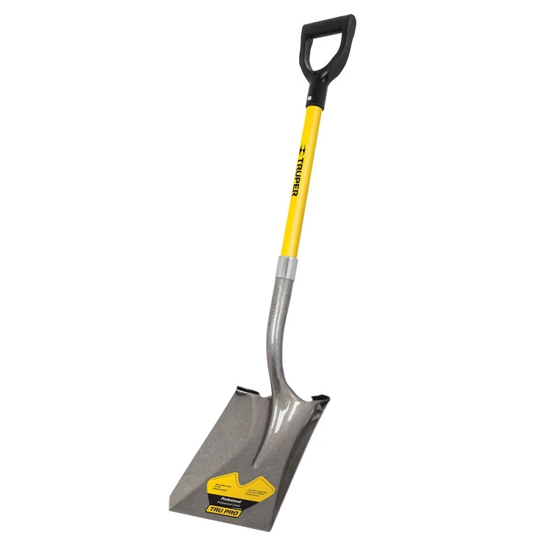 Градинска лопата с правоъгълна глава и удобна дръжка с “D” захват. Дръжката е изработена от фибростъкло, а главата от въглеродна стомана. Защитена е с покритие от боя против корозия.