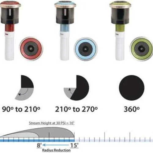 Настройване на сектора на покритие, за модела от 90º до 210º посредством металния диск на дюзата(втората снимка)