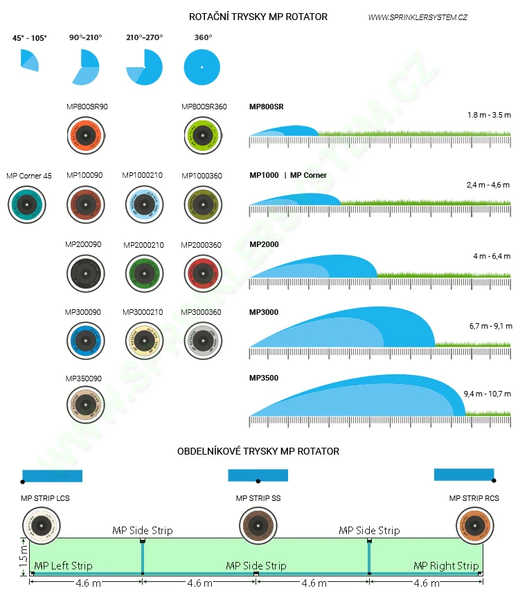 Дюза МР1000210 - радиус 2.5 - 4.6 м., рег. сектор (210º~270º), светлосиня