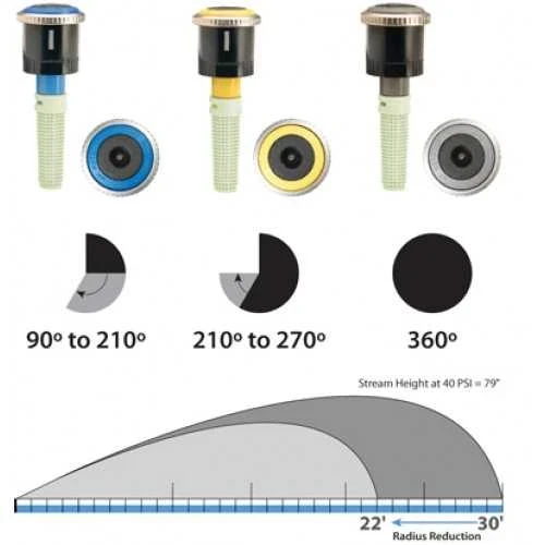 Дюза МР 300090 - радиус 6.7м. до 9.1м., рег. сектор (90º~210º), синя