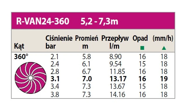 Дюза R-VAN 24 от 45º до 270º, Дюза R-VAN 24 360º