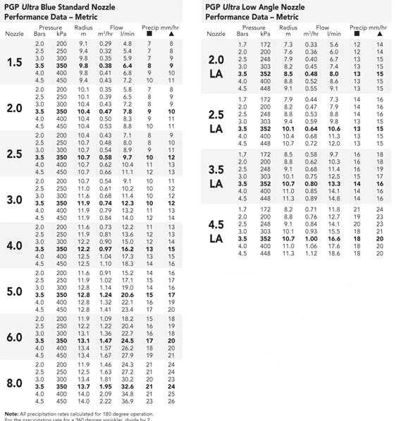 Роторен разпръсквач за големи площи с 8бр. стандартни сини дюзи и 4бр. сиви дюзи с нисък ъгъл на пръскане включени в комплекта.
