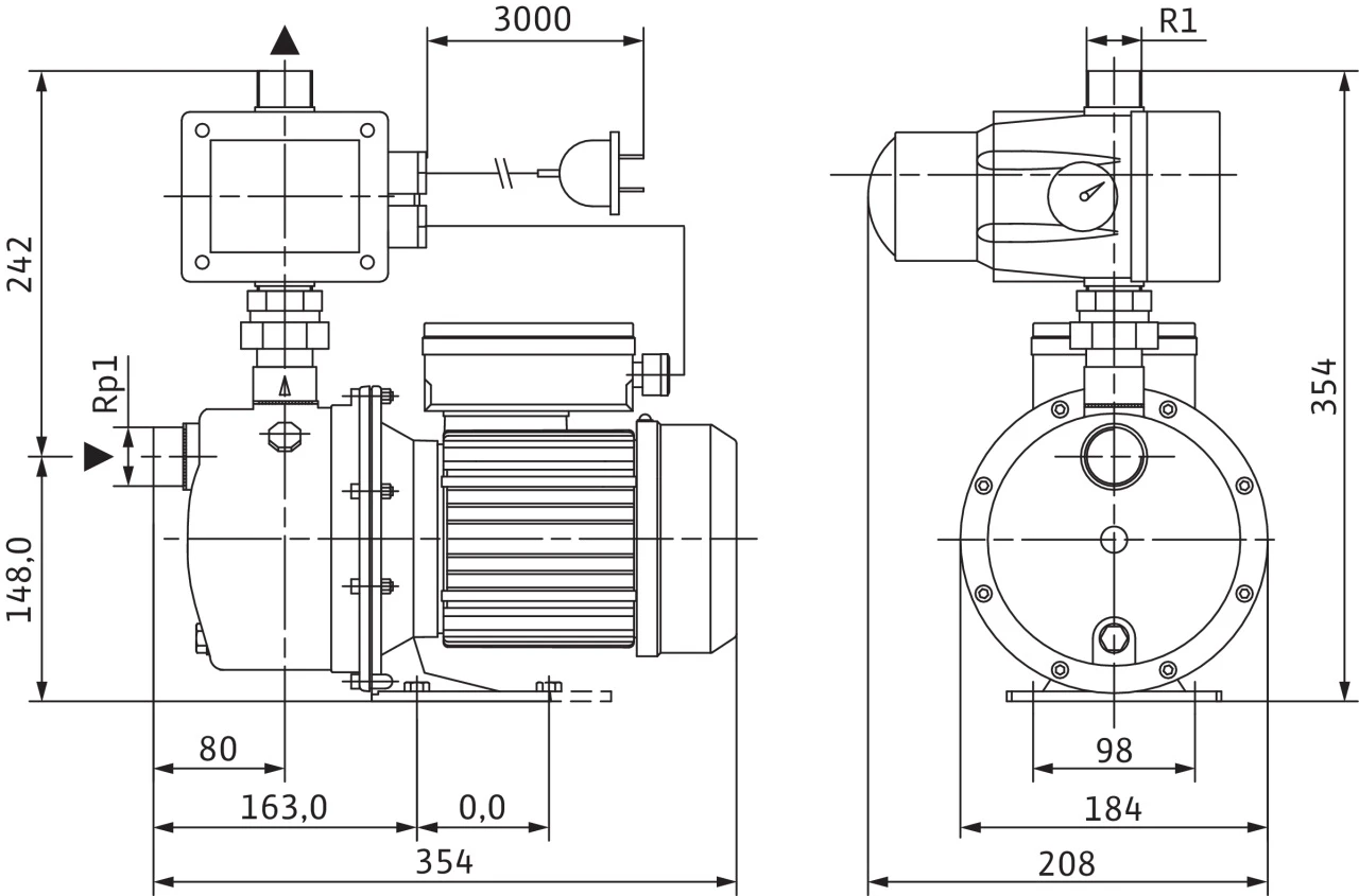 Компактна система с центробежна помпа с хоризонтален смукател и вертикален нагнетател, състояща се от: самозасмукваща, едностъпална джет помпа, включително дръжка. Монофазен мотор с директно фланцово присъединяване, с вградено термореле за моторна защита и кондензатор.