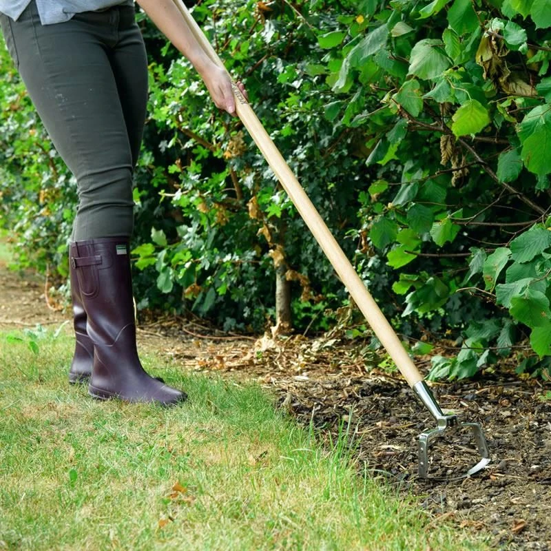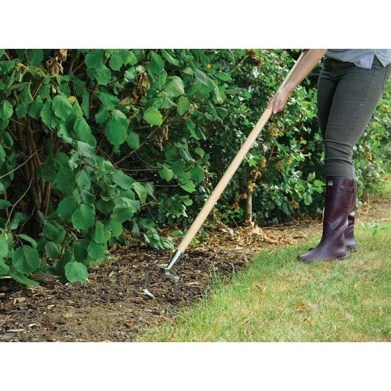 Осцилираща мотика изработена от висококачествена неръждаема стомана и красиво дърво от ясен. Осцилиращата мотика осигурява маневреност, както и пъргавина с изправения лукс на инструмент с дълга дръжка.