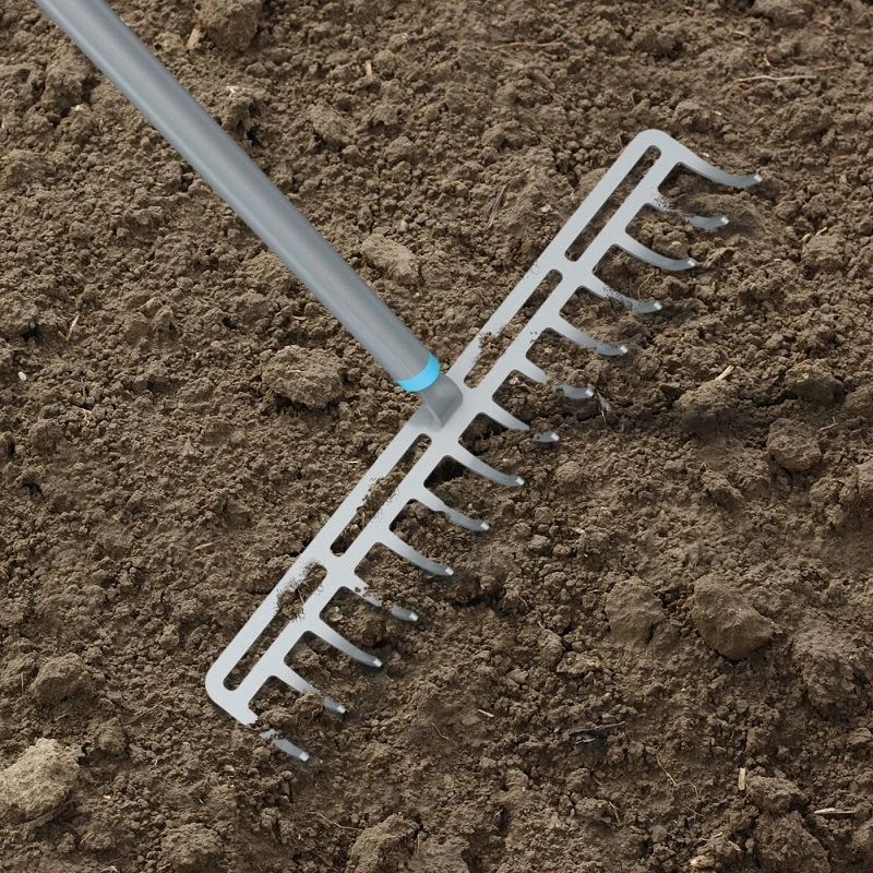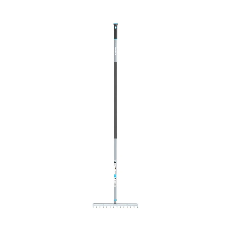 Висококачесствено метално гребло с 14 зъба, направено от закалена неръждаема стомана. Подходящо за изравняване не терени, събиране на листа, събиране на паднали съчки, събиране на трева. Главата на греблото е изработена от неръждаема стомана, дръжката е алуминиева и лека, което прави работата с греблото лека и удобна. Дръжката на греблото е покрита със SAFETOUCH™ повърхност, която осигурява сигурен захват и удобство при употреба.