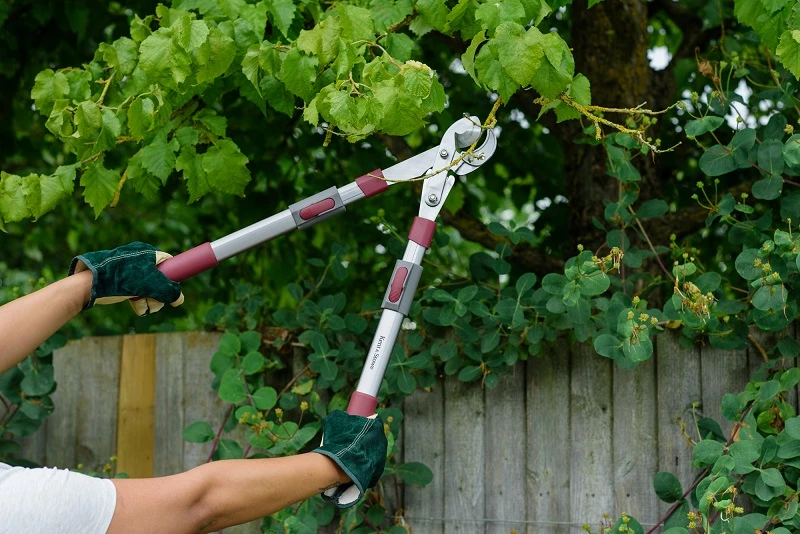 Ръчно изработена Ножица Наковалня с телескопична дръжка за прецизно рязане. Тази ножица е идеална за стъбла или клони, които не могат да бъдат достигнати с ръка или са твърде големи за градинарските ножици и изискват рязане с две ръце.