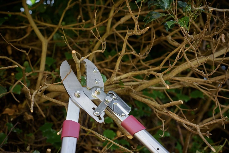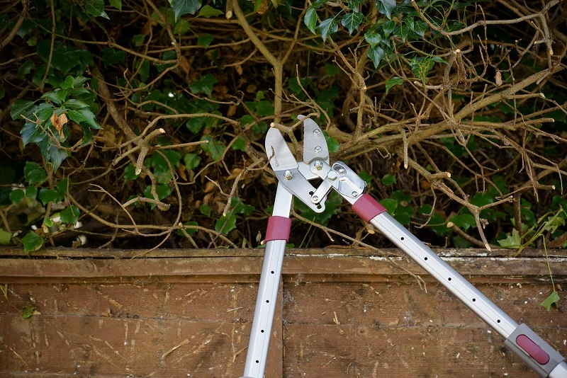 Ръчно изработена телескопична ножица за клони за прецизно рязане. Тази ножица е идеална за стъбла или клони, които не могат да бъдат достигнати с ръка или са твърде големи за градинарските ножици и изискват рязане с две ръце. Действие : наковалня.