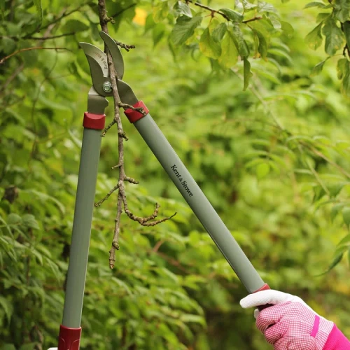Ръчно изработена универсална ножица за прецизно рязане. Този вид ножица е идеален за стъбла или клони, които са твърде големи за градинарските ножици и изискват рязане с две ръце. Байпас действие: Този модел има 2 заострени ножа, които преминават един върху друг.