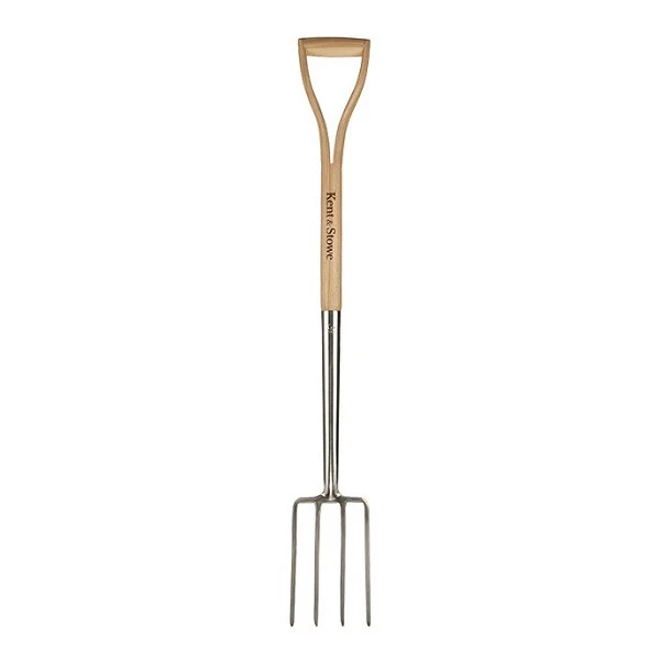Изключително устойчива на ръжда и лесна за почистване вила с удължена дръжка за намаляване на натоварването на гърба и технология за минимално полепване на почвата.